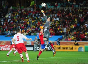 Bilder vom Spiel der Fussball Weltmeisterschaft 2010 der Gruppe H am 16. Juni 2010 (16.00 Uhr). Spanien spielt gegen die Schweiz. Das Spiel endet mit einem knappen und überraschenden Sieg der Schweiz 0:1.